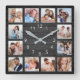 Black Wood Custom Photo Collage Elegant Square Wall Clock