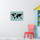 A graphic map of the world with white and blue (customizable color) striped background