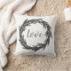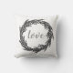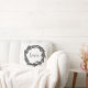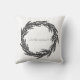 Pillow featuring black botanical design with text that can be personalized, available in other colors.