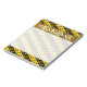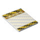 This notepad design features a pattern of black and yellow stripes containing beamed sixteenth note musical symbols. This could make a great gift for a musician, a composer, or somebody who likes to listen to music. It also features a customizable name within a faux gold like colored area. [~Z0000037]