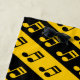Black & Yellow Beamed Sixteenth Notes Pattern Beach Towel