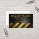 Cool Black Brushed Steel, Carbon Fiber Effect, with Yellow Warning Chevrons, Grunge Background Professional - Business Card.