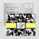 Yellow & Black Damask Monogram Wedding RSVP Cards - For Buffet Receptions: