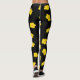 Cool black leggings printed with bright yellow hibiscus flowers. Tropical print leggings.