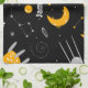 Black Yellow Outer Space Stars Moon Rocket Kitchen Towel