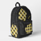 Two-tone black and yellow. Checkered appliqués on a black backpack. Add your name to the front and your text to the right and along the zipper. Alternatively, you can change the appliqué designs to your own images or pattern.