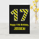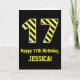 Black & Yellow Striped "17"; 17th Birthday + Name Card