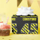 This attention-grabbing, fun, birthday-themed wrapping paper design features a large number "45", with a yellow and black striped pattern. It also features the message "Happy 45th Birthday,", and a customizable name. The background is colored black. Birthday themed wrapping paper like this might be used when giving a gift or present in celebration of somebody’s forty fifth birthday. [~Z0000381]