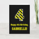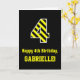 Black & Yellow Striped "4"; 4th Birthday + Name Card