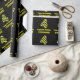 Black & Yellow Striped "4"; 4th Birthday + Name Wrapping Paper