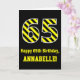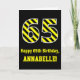 Black & Yellow Striped "65"; 65th Birthday + Name Card