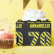 This fun, bold, birthday-themed wrapping paper design features a large number "70", with a yellow and black striped pattern. It also features the message "Happy 70th Birthday,", and a customizable name. The background is colored black. Wrapping paper like this might be a fun way of wrapping a birthday present or gift being given to somebody who is celebrating their seventieth birthday. [~Z0000381]
