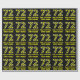 This bold, fun, birthday-themed wrapping paper design features a large number "72", with a black and yellow striped pattern. It also features the message "Happy 72nd Birthday,", and a personalized name. The background is colored black. Birthday themed wrapping paper like this might be used when giving a gift or present in celebration of somebody’s seventy second birthday. [~Z0000381]