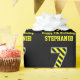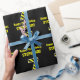Black & Yellow Striped "7"; 7th Birthday + Name Wrapping Paper