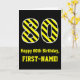 Black & Yellow Striped "80"; 80th Birthday + Name Card
