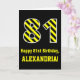 Black & Yellow Striped "81"; 81st Birthday + Name Card