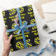Black & Yellow Striped "96"; 96th Birthday + Name Wrapping Paper
