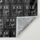 Black and white backdrop for your business with your logo as a pattern covering the backdrop tapestry. Add your social media handle beneath white social media icons. Business backdrop personalized with your logo and social media.