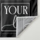 Black and white backdrop for your business with your logo in a frame around your custom text. Add your social media handle beneath white social media icons.