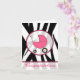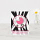 A baby congratulations card featuring a black and white zebra print background with pink trim. Front text reads "Congratulations" and may be customized. Illustration of a hot pink baby carriage inside a matching circle shaped frame. Add your own message inside. Look for matching invitations in the "Baby Shop" category of The Pink Schoolhouse store.