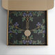 Tissue paper with the design by William Morris (1834-1896) of a blackberry fruit vine with blue-violet flowers on a black background.