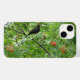 This awesome iPhone case features a photograph of a blackbird sitting in a tree. Hanging from the tree are groups of bright red berries. This photo was taken during the height of summer.