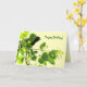 This birthday card features a red-winged blackbird on a branch way up in an aspen tree. He is peeking out from behind the golden green leaves. The sky has a very pale yellow tinge. More blackbirds are inside. The text can be customized to suit your special occasion.
