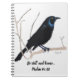 This is a Spiral Notebook with an image of a blackbird drawn in Colored Pencil and includes an inspirational verse.