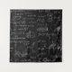 Blackboard inscribed with scientific formulas and tapestry