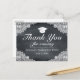 Graduation Thank You postcard. Black chalk board background and white lace decor.