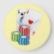 * Blackjack with Poker Chips Wall Clock to personalize! * Resize the design to make room for text or message. * Curved text is available with several font styles and colors. * Change the yellow background to a color of your choice. Square shape or two sizes for round clocks. * Click the CUSTOMIZE button to get started! *