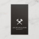 Blacksmith Iron Works Metal business card features an icon of an anvil with hammers. Perfect for metal, blacksmith, metal worker, metal working, forging, smithy, iron, iron work, contractor, construction, building, home renovation themes.