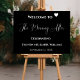black welcome sign ,Welcome To the morning after wedding brunch Foam Board, simple script wedding brunch party welcome sign all text are editable.