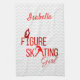 Red Personalized blade towel for figure skating girl - a beautiful figure skating gift which is useful as it is essential to dry out your blades after practice!