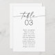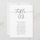 This table number seating chart features a boho handwritten script font and modern minimalist design. Easily change the number and the names along with all of the colors to fully match your event.