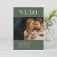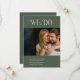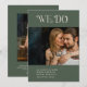 Modern wedding save the date card featuring a minimal layout with "We Do" in bold typography above your landscape photo. The back has a portrait photo along with additional details. All design elements are in moss green and ivory and may be changed in the design editing tool. This simple yet elegant save the date card is great for an informal or formal wedding.