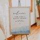 This bridal shower welcome sign features a baby blue watercolor dip with golden flecks and an elegant script font. This welcome poster makes the perfect addition to your ocean or dusty blue themed event.