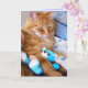 Blank card ready for your own message featuring a Maine Coon cat and her teddy bear.