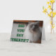 My cat is the exact same way when you say the word 'treats'! Very funny picture on a quality card. printing was perfect and really captured the expression of the cat well