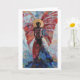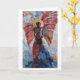 Intense blues and reds convey the spiritual tone of this inspirational painting. A heavenward-gazing angel is featured in this fine art painting by Mollie Walker Freeman. Use as an everyday greeting, encouragement, or "thank you."
