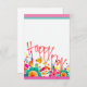 Whimsical art. Bright cheerful "Happy Day" note card, thank you note. Room on both back and front for note. Pink, aqua, sunny yellow modern floral.
