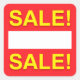 Square, blank sale or discount stickers featuring the text "Sale!" in yellow top and bottom. In the middle is a blank white area where you can add the discount percentage or price. Great retail sale stickers for your business. NOTE! THE STICKERS ARE GLOSSY SO REQUIRES A SHARPIE OR A SIMILAR PEN TO WRITE ON THEM OR THE TEXT WILL SMUDGE.