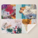 Personalized sherpa blanket featuring 4 changeable images and a rounded white frame between them. A great gift for family members.