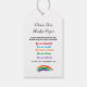 The quality and weight of the paper used was excellent. I love the feminine floral design. I gave received so many compliments on the unique cut of the tag. I also use these tags as a business card. This is my 3rd time ordering this design. I love it! I was very pleased with the printing. I was excited that I was able to print separate messages on both sides of the tag. Very clean look.