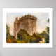 Vintage photo lithograph of Blarney Castle in County Cork, Ireland from 1895 pictures a medieval stronghold on a hill surrounded by trees. Digitally cleaned, enhanced and artistically rendered to resemble pen and ink with watercolors. Blarney Castle is located near Cork and the River Martin.