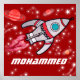 Cartoon graphic rocket space poster. Great to brighten a space themed kids room. Personalise this item with your child's name (up to 8 letters). (***Please note some names will not always fit due to the nature of the font, please contact me and I will be happy to post a poster with your name on). This example reads: Mohammed. Uniquely designed by Sarah Trett. www.sarahtrett.com for www.mylittleeden.com