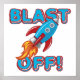 Our Blast Off design is a great design for kids of all ages who love space and rocket ships, features a blue and red rocket ship with flaming exhaust and text that reads Blast Off! Blast Off rocket ship T-shirts, bibs, blankets, cards, stickers, mugs, bags, pillows, wall clocks, and much more!