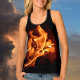 All over printed tank top is all over ablaze with flames of bright orange fire on black. It's Hot, While you'll be cool. It is edgy, flirty and fun with beautiful burning flames.