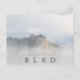 Bled castle surrounded by clouds postcard