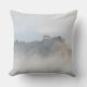 Photo throw pillow cushion with historic Bled castle, built upon the rocks along Lake Bled, surrounded by clouds and ground fog, like it is a castle built in the sky, in Bled, Slovenia.